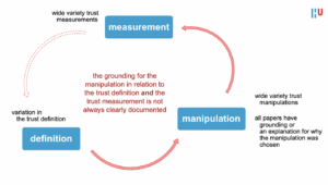 “Een dimensie waar wat minder aandacht aan wordt besteed is de meetbaarheid van de definitie, terwijl dit toch echt belangrijk is. Als jij een definitie hebt van vertrouwen waarin transparantie centraal staat, maar een meting van vertrouwen gebruikt die vooral de acceptatie-dimensie meet, dan meet je dus iets anders dan waar je voor bent gaan ontwerpen. En stel dat het dan achteraf werkt, dan werkt het dus niet op de manier waarop je bedoelde dat het werkt.”